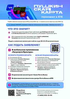 Важная информация о Пушкинской карте: с 2026 года её будет выдавать ВТБ — новый оператор программы.