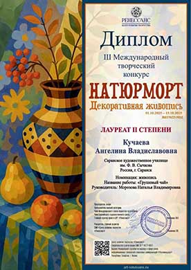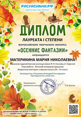 Всероссийский художественный конкурс "Палитра талантов", лауреат I степени