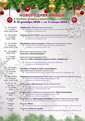 Подробная афиша с 19 декабря по 11 января в театрах, музеях и библиотеках Саранска - в прикрепленных файлах и на Культурном портале РМ - mktrm.ru/afisha/672