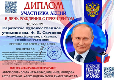Администрация Саранского художественного училища имени Ф.В. Сычкова выражает благодарность всем участникам принявшим участие в акции в День рождения с Президентом!