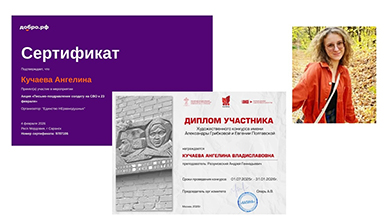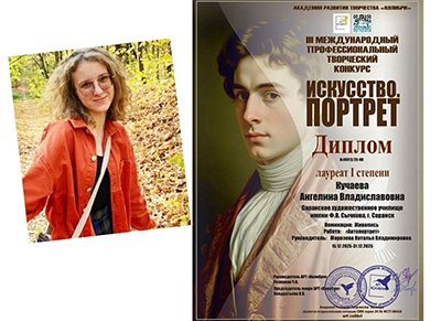 Кучаеву Ангелину с получением Диплома участника художественного конкурса имени Александры Грибковой и Евгении Полтавкой.