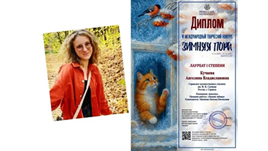 Руководитель Морозова Наталья Владимировна. С успешной педагогической работой, которая привела к подготовке Кучаевой Ангелины, завоевавшей Диплом Лауреата I степени на данном конкурсе.
