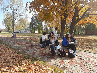 В рамках экскурсии в Тарханах состоялся пленэр, где студенты могли применить полученные знания на практике и вдохновиться атмосферой усадьбы.